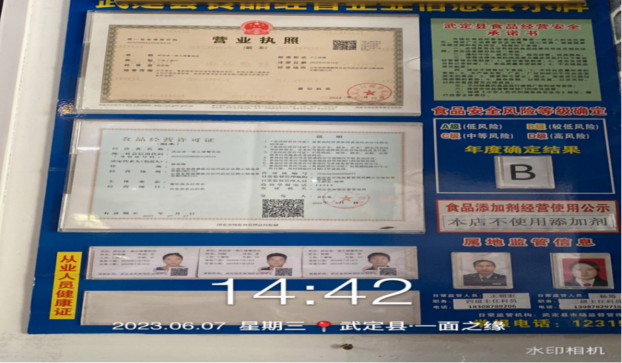 上榜理由:1.门前“三包”责任落实到位,证照、制度齐全,按要求公示;