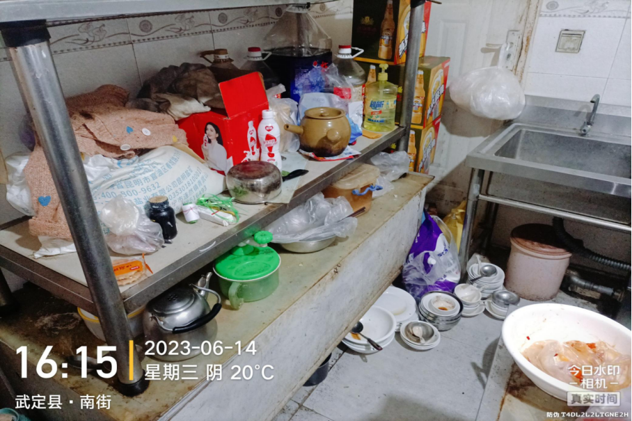 3.后厨环境卫生差、存在卫生死角、货柜物品堆放杂乱。