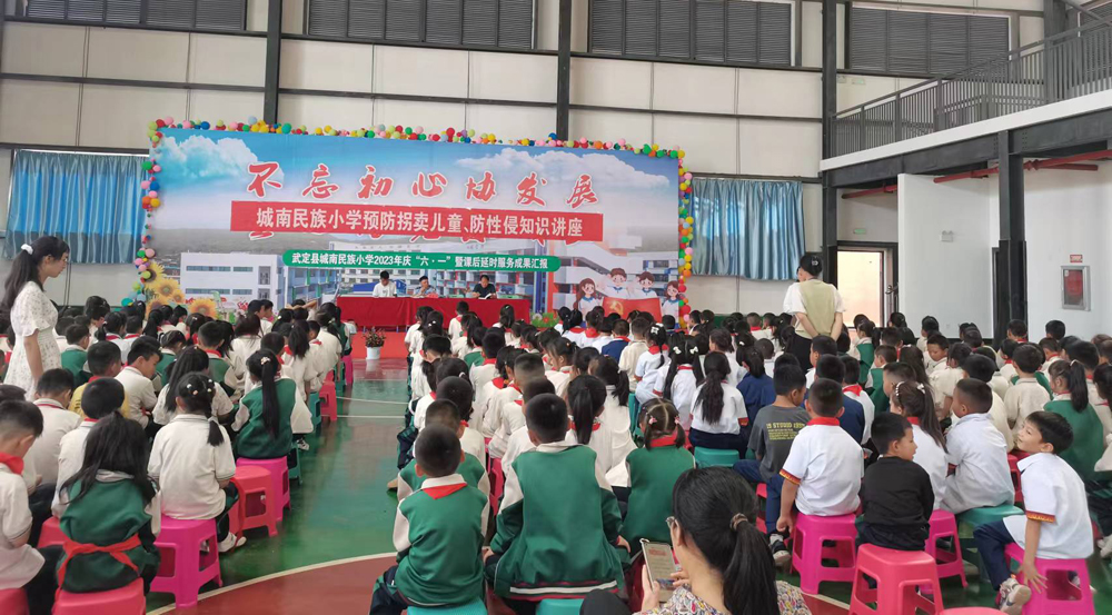 为了提高全校师生的安全意识,让师生掌握必要的安全知识,2023年6月2日下午开展了以“防电信诈骗、防拐卖儿童、防性侵”为主要内容的安全教育活动。南街社区民警袁志宏受邀出席活动并作了“防电信诈骗、防拐卖儿童、防性侵”专题讲座。城南民族小学全体师生参加了此次活动。