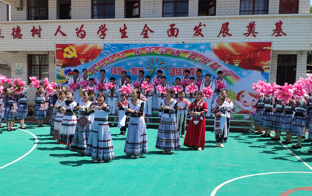 武定县青少年学生校外活动中心是中央彩票公益金支持建设、支持运转的重要项目单位,是县教育体育局主管的面向青少年学生的唯一公益性校外教育基地。2023年,投入4.5万余元为香水中学活动站苗族学生合唱团购置演出装备。活动中心坚持在苗族集聚地区滑坡小学举办公益性“苗族艺术培训”。学校利用课外活动时间,每周组织全校学生进行一至二次课外艺术培训,全校学生人人参加,课外艺术教育参加率100%。艺术培训活动长期坚持,“双减”政策的落实,激发了苗族少年儿童爱读书学习的热情,助推了教育“双升”,失辍学生为零,得到各级和社会的好评。2023年六一儿童节来临之际,活动中心经过精心准备,与滑坡小学联合举行以“中华民族一家亲,紧密团结跟党走”为主题的庆六一文艺演出活动。