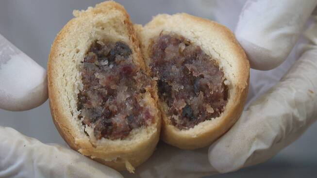 武定县云吉祥食品有限公司经理王平:这是我公司今年推出的鸡枞云腿月饼,我们采用新鲜的鸡枞油炸后加入两年的火腿,纯手工制作,我们今年制作的火腿月饼外观圆润饱满,色泽也比较好, 要感谢供电部门对我们的大力支持,长期以来我们这里供电电压比较稳定,所以我们烤出来的产品色泽比较稳定。