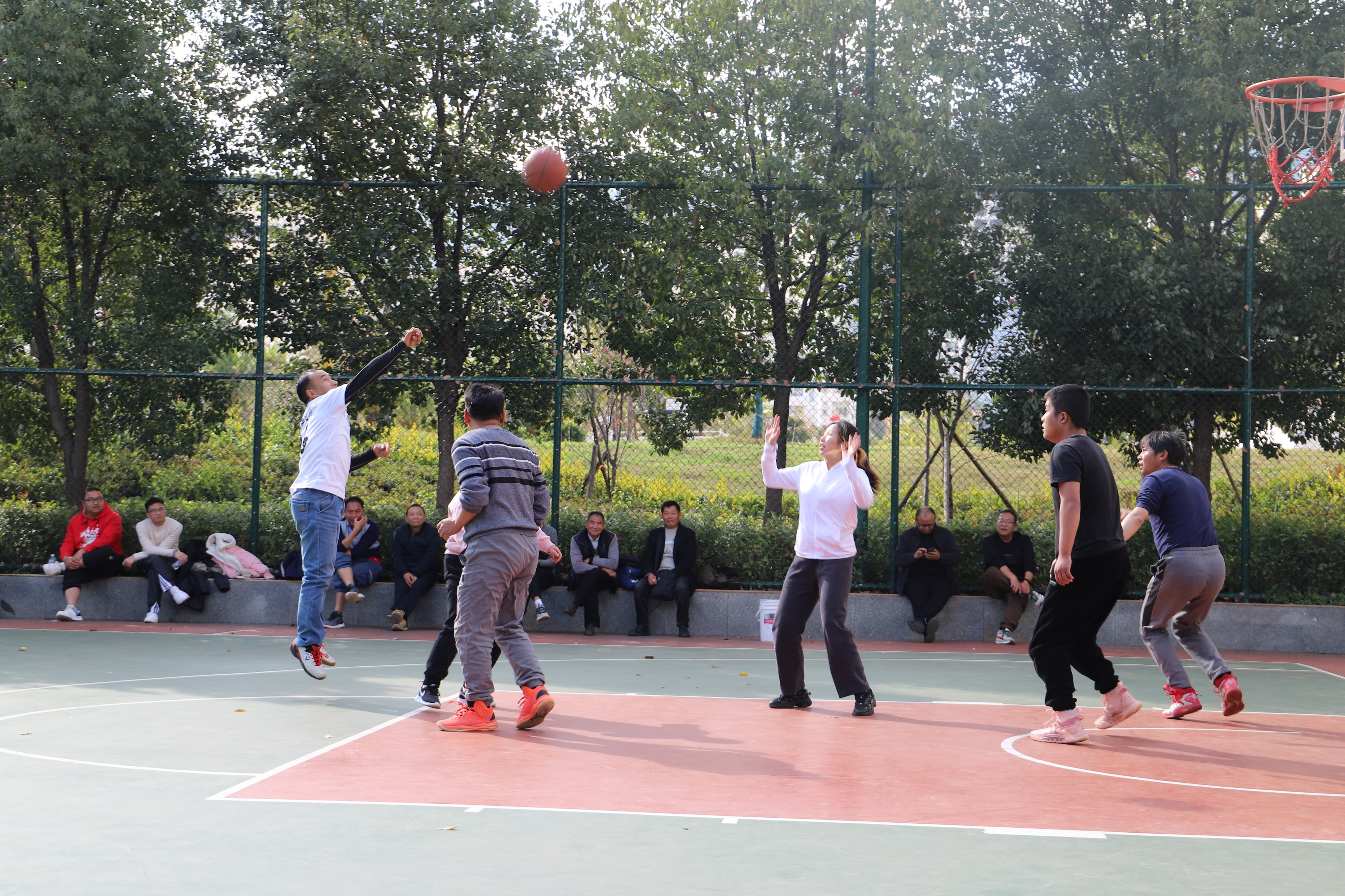 运动会项目以益智、趣味为主,设三人篮球、定点篮球、乒乓球、羽毛球、棋牌、飞镖比赛和团队同舟共济、四人五足、搬运篮球、6人接力、蒙眼喂香蕉等11个项目。其中,最引人注目的当属四人五足比赛,赛前每组参赛人员各一条腿用布带捆缚在一起,以站立方式起跑,当哨声响起后,四名选手同时起跑,他们有跳有跑,有的跑快,有的跑慢,导致不时摔倒,趣味横生的比赛引得场外观众哈哈大笑。在搬运篮球游戏项目中,两人为一组,背对背将篮球夹在中间,再以“螃蟹步”在起点和终点跑上一个来回,有的队伍篮球掉了、有的队伍步伐不一致,被队友拖着走,欢笑声此起彼伏,呐喊声响亮激昂。