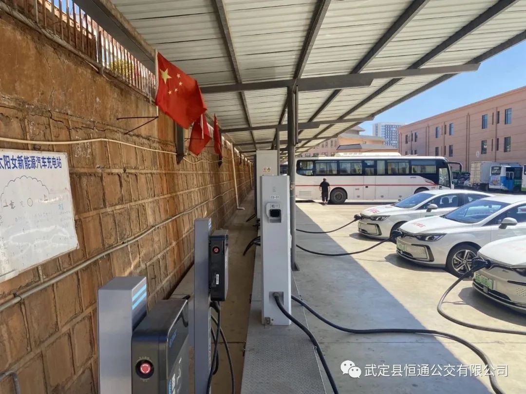 武定太阳女新能源汽车充电站位于永武高速路口旁武定客运站内,设立快充直流充电桩21台,共42把枪,每枪单体输出最大电压800V、每枪单体输出最大电流250A;同时设立慢充交流充电桩15台,共15把枪,每枪单体输出电压220V,输出电流32A,可涵盖市面上多种符合国际标准接口的新能源电动汽车的补电需求。