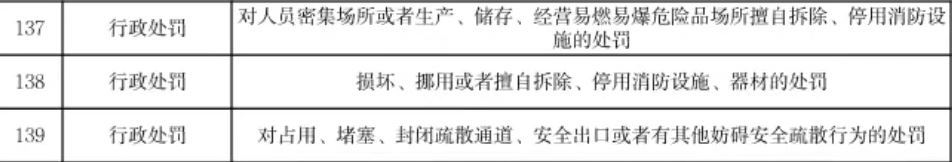 六是对人员密集场所或者生产、储存、经营易燃易爆危验品场所擅自拆除、停用消防设施的处罚;