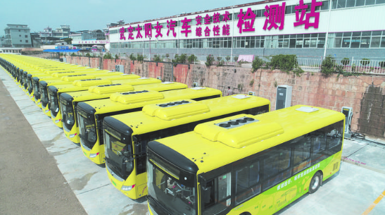 2019年8月,为积极响应国家节能减排号召,推进武定新能源汽车推广应用步伐。由武定太阳女交通旅游有限公司下属的武定县恒通公交有限公司新增购置40辆宇通牌新能源纯电动公交车投入运营,新增投入的40辆新能源纯电动公交车投放在武定县城和主干道上开展运营服务工作,涉及运营线路8条,服务群众上万人,加上原有的45辆公交车,18条公交运营线路,武定县全面实现了城郊公交车全覆盖。切实解决了县城客运拥挤和群众出行难问题,改善了武定城市交通环境,提升城市品位,为打造优秀旅游城市目标奠定了坚实的基础。目前,40辆新能源纯电动公交车配套基础设施充电站已投入使用,42把充电枪配套42个停车位,并能同时启动开展充电服务,在满足公交车充电需求的同时,服务于广大新能源电车车主,及时填补武定县新能源电动车充电空白短板,及时解决充电难等问题,加快新能源电动汽车推广应用步伐,推动武定经济社会持续稳定高速发展。