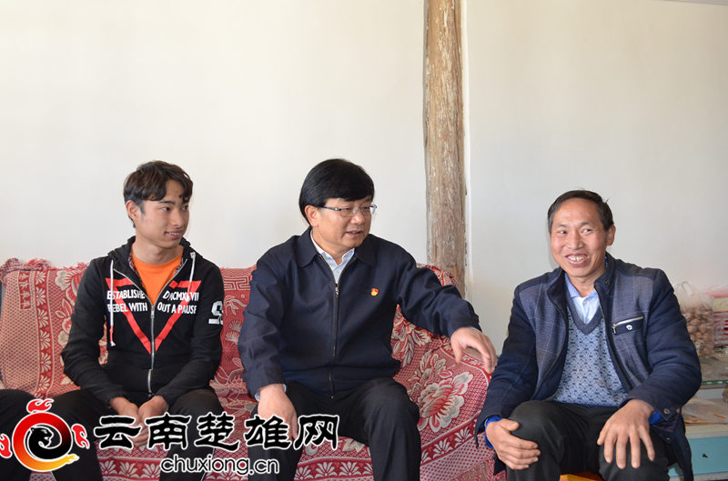 一大早,杨斌就来到插甸镇老木坝村委会半箐村民小组贫困户肖跃昌家,与肖跃昌亲切交谈,详细询问其家庭情况、生活状况等。在贫困户张学文、方跃东、张丽仙家中,杨斌与他们亲切交谈,详细询问他们的身体状况、家庭收入、子女上学、医疗保障和生活等情况,细心察看了他们的住房环境,帮助他们算经济账、算前景账,向他们宣讲国家最新的精准扶贫政策。鼓励他们树立信心,勇敢面对困难,依靠党和政府的好政策,通过自己的辛勤劳动,努力改善生活条件。杨斌叮嘱镇、村干部,要进一步关心关注贫困群众的生活,把他们的冷暖放在心上,尽力帮助他们解决实际困难,全力以赴做好迎接省第三方评估检查工作,确保武定县高质量如期实现脱贫摘帽。