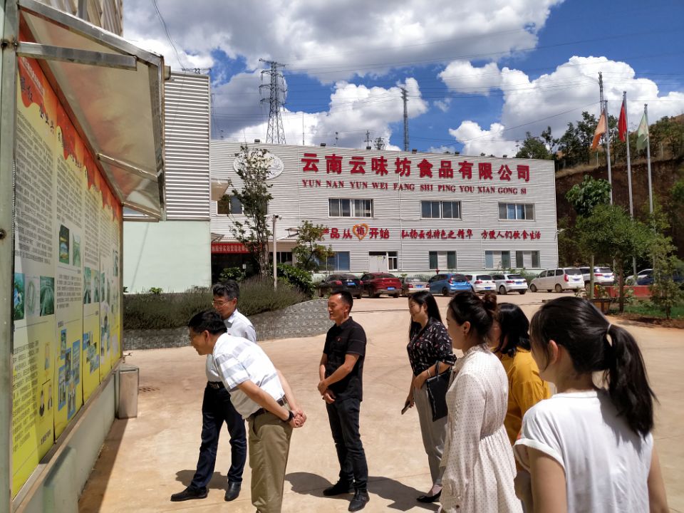 云南武定云味坊食品有限公司党支部书记杨志红带领调研组一行参观了支部党建工作展示区、学习园地、党员活动室以及公司的办公环境,并介绍了支部近年来党建工作开展的基本情况。州委组织部李副部长对公司复工复产情况、企业运转情况及省州县对企业投产稳产措施落实情况进行了详细了解。