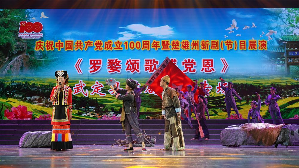 11月17日晚,武定小彝剧专场《罗婺颂歌感党恩》在彝州大剧院倾情上演,整场演出紧紧围绕百年来党的光辉奋斗历程、打赢脱贫攻坚战的感人事迹、万众一心抗击疫情等重要主题,突出主旋律、讴歌新时代、传播正能量。