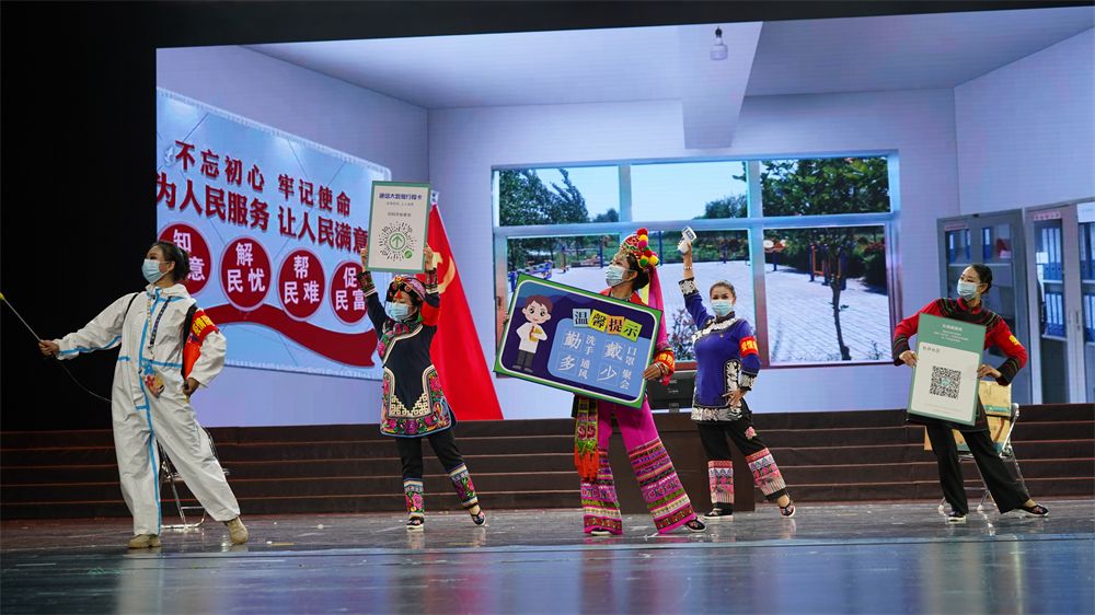 此次展演,武定县带来了以脱贫攻坚与乡村振兴有效衔接为题材的小彝剧《木坝村的歌声》,以疫情防控为题材的小彝剧《社区主任》,以党史学习教育“红色故事”为题材的小彝剧《那红红的马缨花》3个优秀精品节目,诙谐幽默的唱词、扎实的舞台表演、富有深意的故事……小彝剧的喜乐元素逗得观众开怀大笑,感人之处也让观众潸然泪下,演员们用艺术的形式深情讴歌党的光辉历史,生动表达武定人民勇于担当、爱岗敬业的初心使命,竞相展示广大干部职工昂扬向上、奋发有为的精神面貌。
