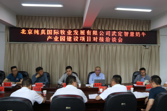 7月1日下午,我县与北京纯真国际牧业有限公司召开北京纯真国际牧业发展有限公司武定智慧奶牛碳中和融合产业园建设项目对接洽谈会,就在插甸镇、狮山镇开展智慧奶牛产业园建设进行洽谈。县委副书记黄飞、县政协主席周廷质、县人民政府副县长龚世雄、县政协副主席李建云以及相关单位负责人参加座谈会。