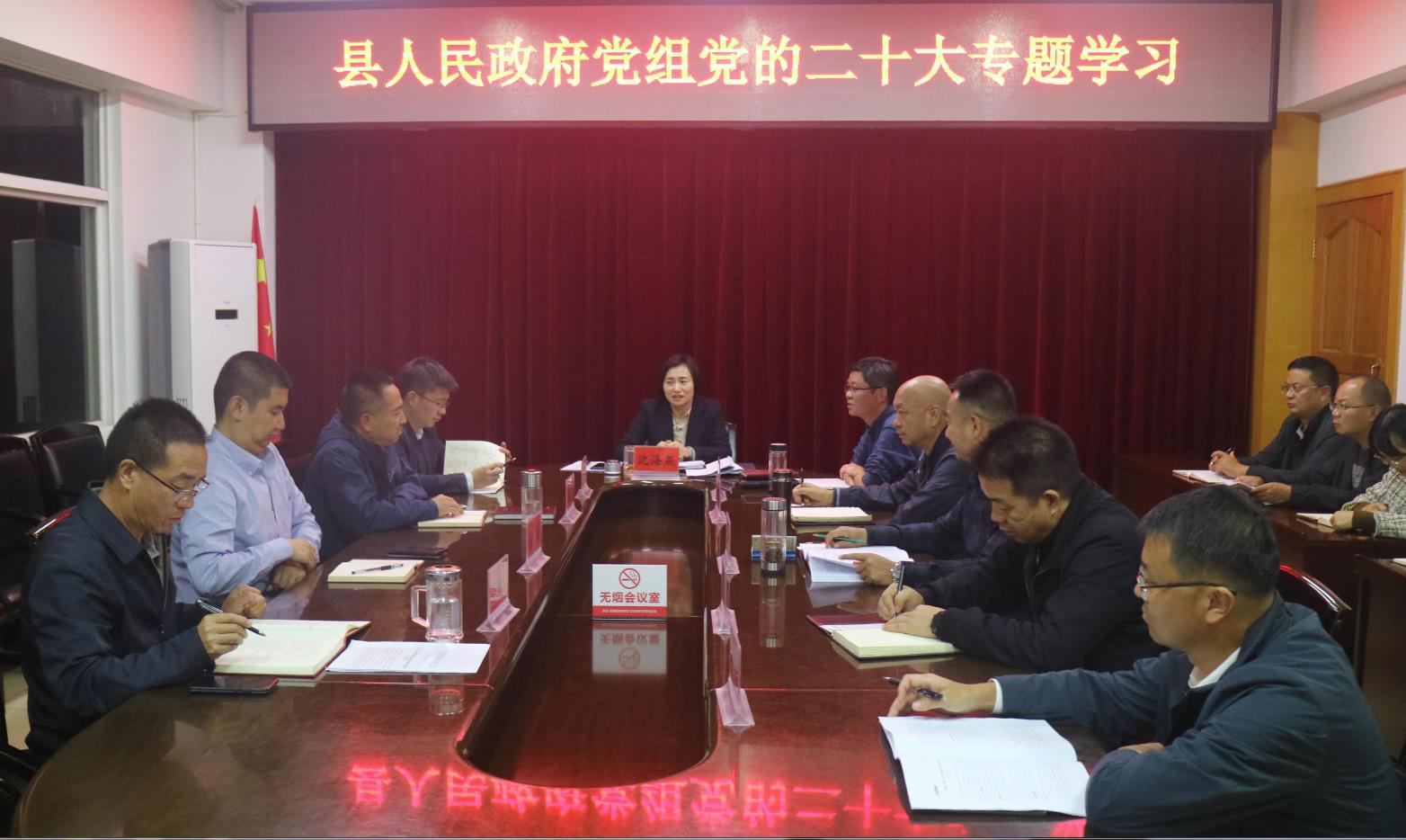 10月24日,县人民政府党组党的二十大精神专题学习会议召开。会议传达学习党的二十大及二十届一中全会精神、上级重要会议精神并通报中共中央办公厅关于浙江省嘉兴市违规改扩建南湖宾馆问题查处情况、省纪委省监委推进作风革命效能革命、州纪委州监委违规发放津补贴或福利等有关典型案例。