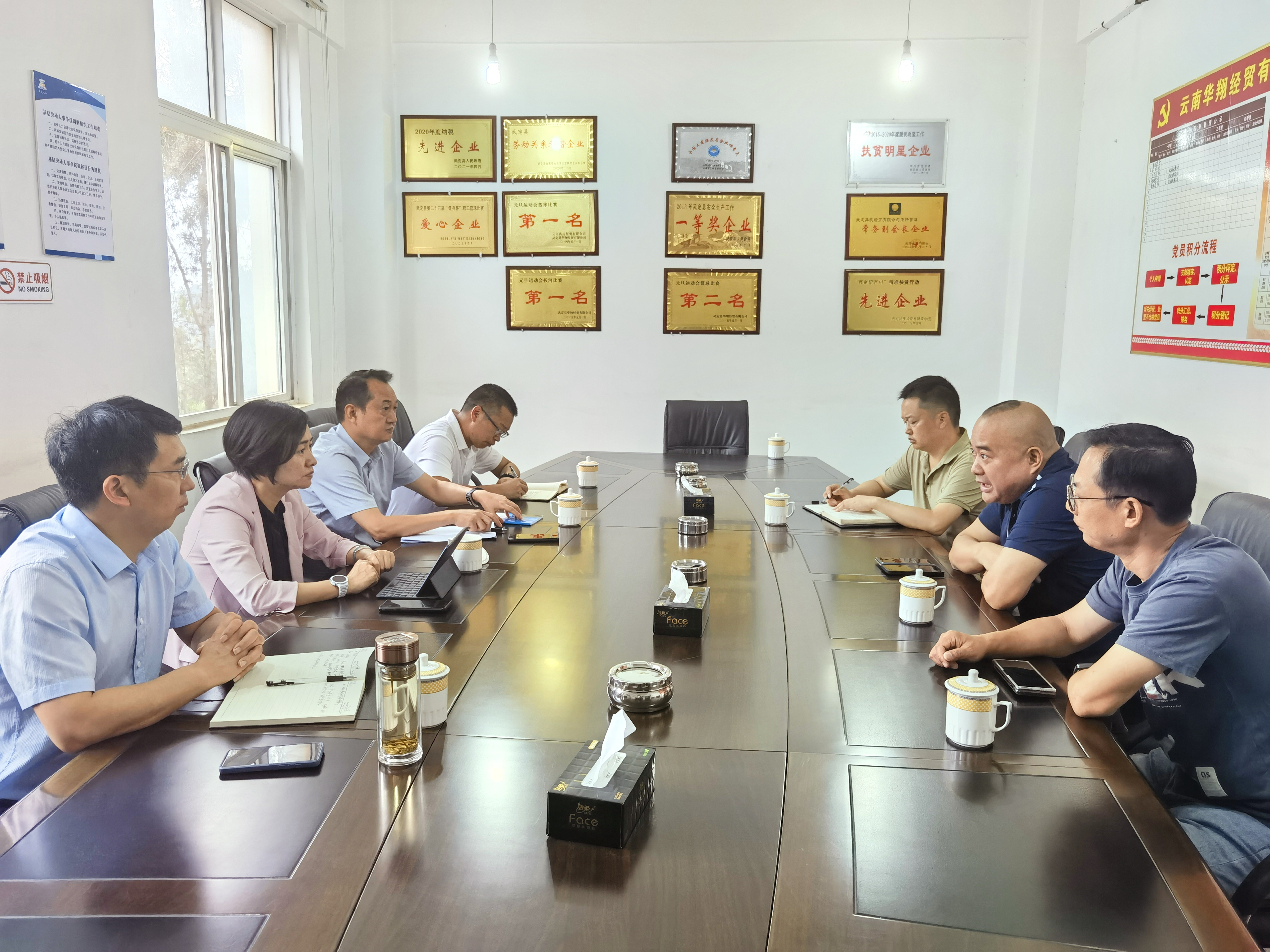 在武定昇凯经贸有限公司,沈海燕一行与企业进行深入交谈,针对企业反映的用电、污水处理、环保等困难,调研组进行现场解答,给出解决问题建议。