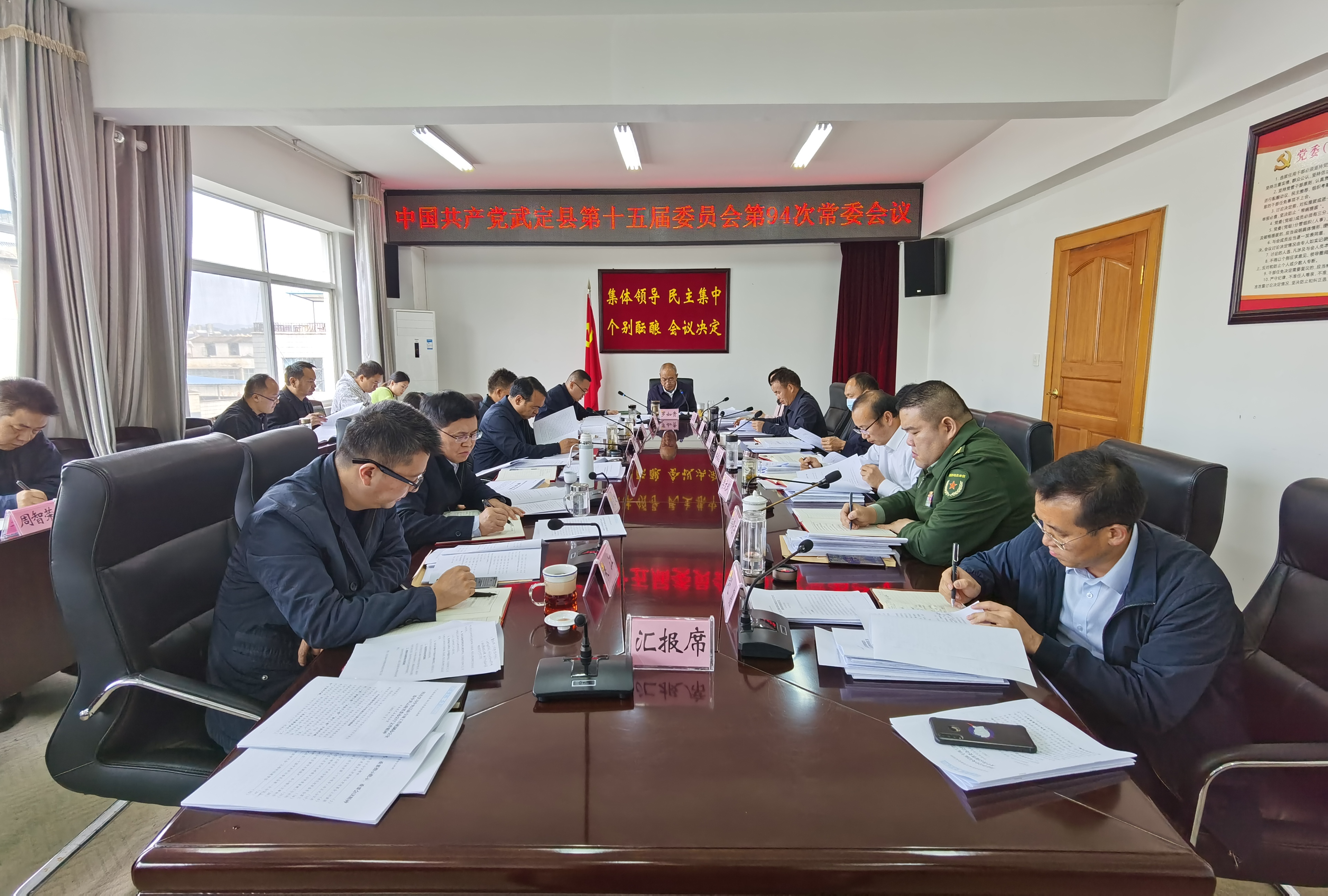 会议传达学习11月27日中央政治局会议精神、习近平总书记在美国友好团体联合欢迎宴会、在亚太经合组织第三十次领导人非正式会议上的讲话精神,主持召开中央全面深化改革委员会第三次会议上的重要指示精神、在北京河北考察灾后恢复重建工作时的重要指示精神、对山西吕梁市永聚煤矿一办公楼火灾事故作出的重要指示精神;审议《武定县卫生健康事业高质量发展三年行动计划实施方案(2023—2025年)(送审稿)》、《武定县学习推广浙江“千万工程”经验三年行动实施方案(2023—2025年)(送审稿)》;听取县委常委会及县人大常委会、县政协党组书记9至10月工作情况汇报。
