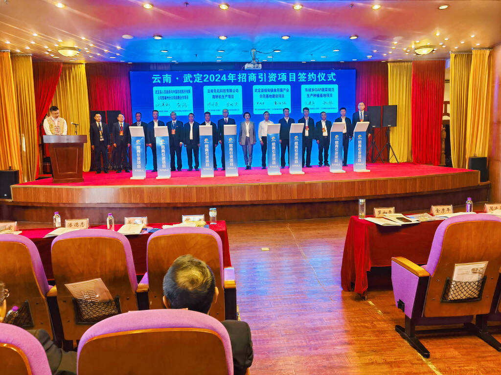 参加此次牡丹文化旅游节招商引资签约的21个项目中,现场签约项目12个,协议总投资69.68亿元。分别是武定县上利普光伏投资开发项目、楚雄金电新能源有限公司武定县光伏风电项目、云南银禾智慧花卉产业发展有限公司武定花卉基地建设项目、武定县人民政府与云南省福建总商会产业战略合作项目、云南维康农业集团有限公司高原特色高标准蔬菜种植项目、云南花当家园艺有限公司武定花卉基地建设项目、武定钛铁尾矿资源综合利用项目、武定县人民政府与中国联合网络通信有限公司楚雄州分公司战略合作项目、武定县人民政府与中国铁塔有限公司楚雄州分公司战略合作项目、云南先机科技有限公司微耕机生产项目、武定县插甸镇食用菌产业示范基地建设项目、东坡乡GAP蔬菜规范生产种植基地项目。