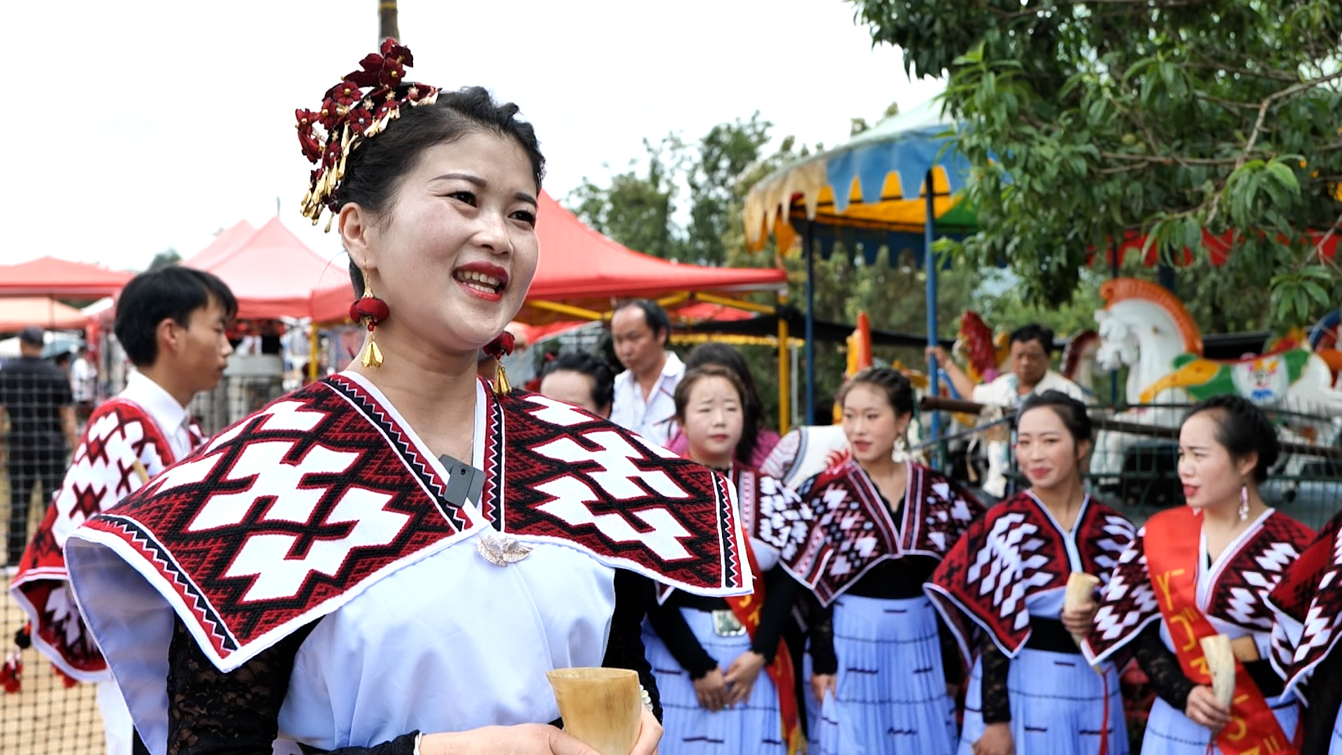 群众 张艳花:现在党和国家的政策越来越好了,老百姓的日子越过越红火,今天我们大家相聚在一起过花山节,一起唱歌跳舞,喝苗家牛角酒,品尝苗家美食,度过了开心快乐的一天。