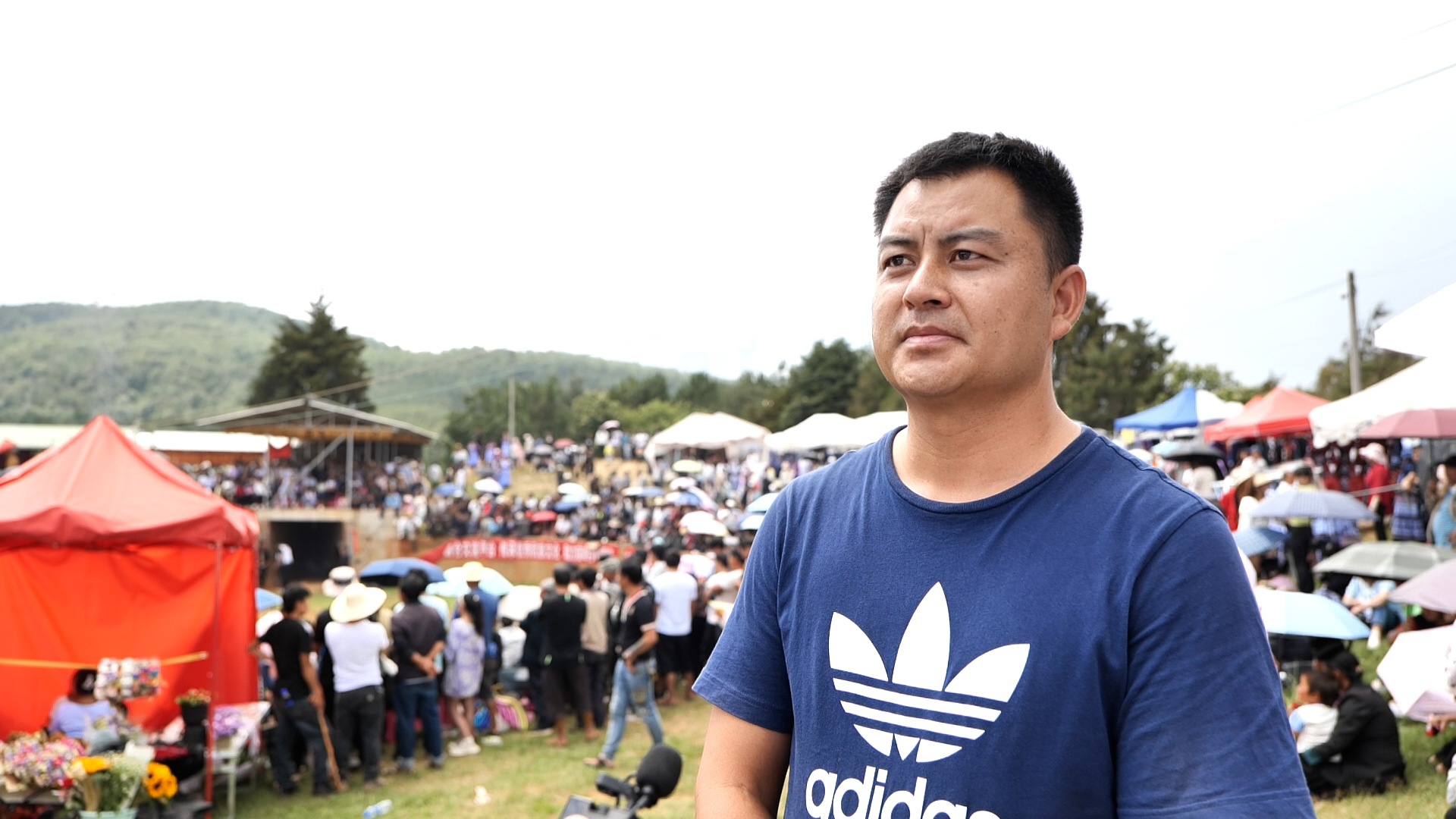 昭通游客 王华英:我来自昭通,我是第一次来到滑坡这个地方,来跟他们这边的苗族一起过花山节,这里的人民感觉很纯朴,很善良,很热情,来到这个地方,像回到自己的家乡,回到我自己家一样,玩得很开心。