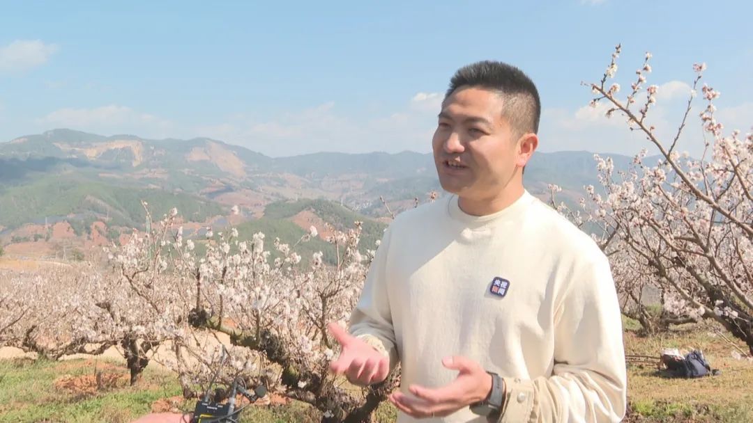 中央广播电视总台记者 李腾飞:武定的樱桃花是盛名在外,立春之后,整个武定就迎来了一年当中最美好的季节,借这次采访报道的机会,我也能亲身来到这么一个美丽的樱桃树林,感觉不虚此行,心旷神怡,这样的春日美景当中,真的是又触动又感动,耳边听的是这种蜜蜂围绕樱桃树樱桃花的这种嗡嗡的声音。眼前尽是春日的美景,感觉真的是就像走进了人间仙境。