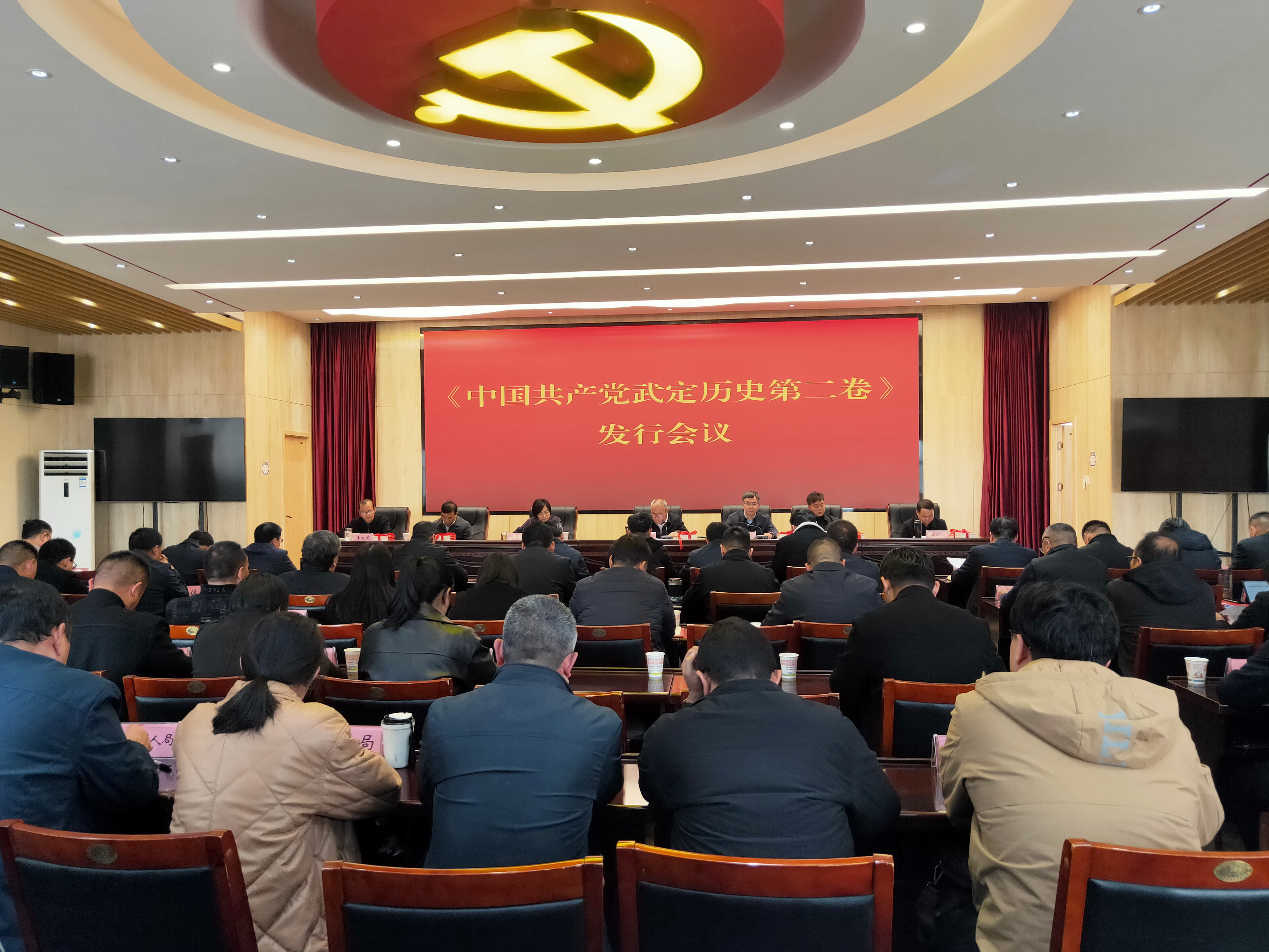 2025年2月21日,中共武定县委举行《中国共产党武定历史第二卷(1950—1978)》(以下简称《武定党史二卷》)发行会。县委书记罗如贵出席会议并讲话,州委党史研究室主任姚云来到会指导,县委副书记、县长沈海燕,县委副书记金彦平、县人大常委会主任普正祥、县政协主席周廷质出席会议,县委常委、县委办公室主任李文武出席并主持会议,与会领导向有关单位赠书。