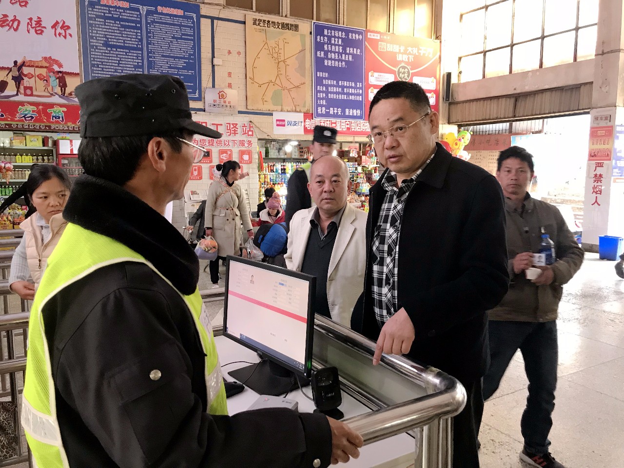 2019年1月23日,春运第三天,武定县人民政府副县长、公安局长杨汉霄针对春运期间道路交通安全管理工作,分别对狮山收费站卡点、昆交集团武定分公司、永吉村春运交通执勤卡点进行了实地督查。