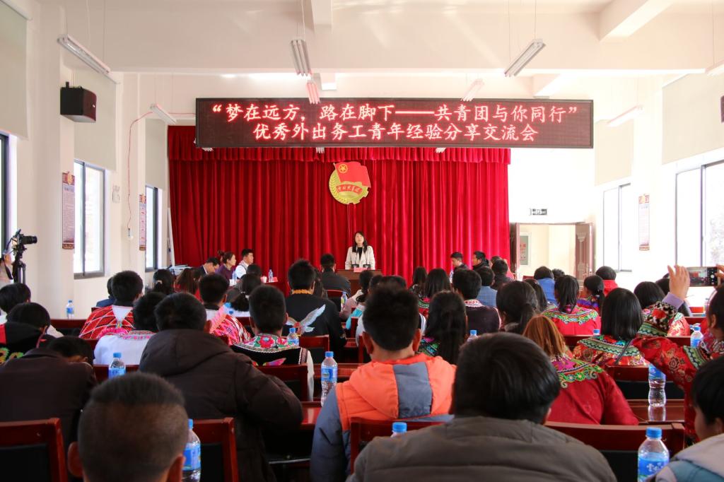 2月18日,由共青团云南省委主办、共青团楚雄州委、共青团武定县委承办的武定县“梦在远方,路在脚下——共青团与你同行”优秀外出务工青年经验交流分享会在发窝乡山品村委会举行。
