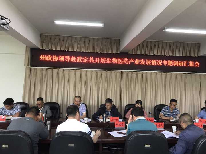为深入贯彻落实州委九届四次全会精神,促进楚雄州生物医药产业发展,2019年4月23至24日,州政协副主席苏铸红一行赴武定县调研生物医药产业发展情况,调研通过实地查看、听取情况汇报、座谈等方式进行。