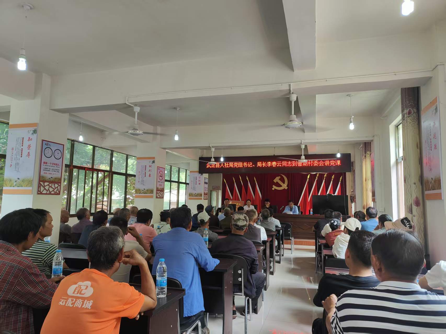 2025年7月1日,正值中国共产党成立104周年之际,武定县人力资源和社会保障局党组书记、局长李春云到鲁期村委会以“讲政治、守纪律、勇担当、奋力开创乡村振兴新局面”为主题,给村四职、驻村工作队员、鲁期村党总支7个支部76名党员讲授专题党课和给优秀共产党员颁发荣誉证书,并对全体党员致以节日的问候。