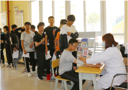 为了促进学生健康成长,准确掌握学生的身体状况,同时为学生体育考试做准备。2021年3月18日,狮山镇卫生院组织医务人员到武定思源实验学校对七年级和九年级所有学生进行体检。