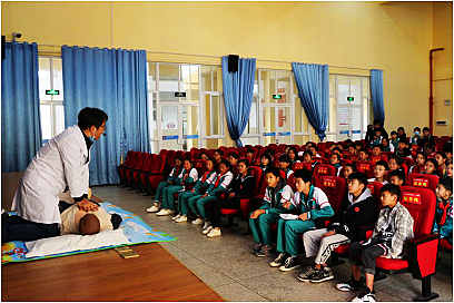为了培养学生从小具备急救意识和能力,在突发卫生事件中作为“第一目击者”不再是急救意识淡薄、技能缺失,狮山镇卫生院副院长张春能利用此次机会给七年级全体学生教授单人徒手心肺复苏术。医生认真细致的为学生讲解操作过程、操作要点和注意事项,并亲自示范操作单人徒手心肺复苏术,事后学生们个个摩拳擦掌,跃跃欲试。