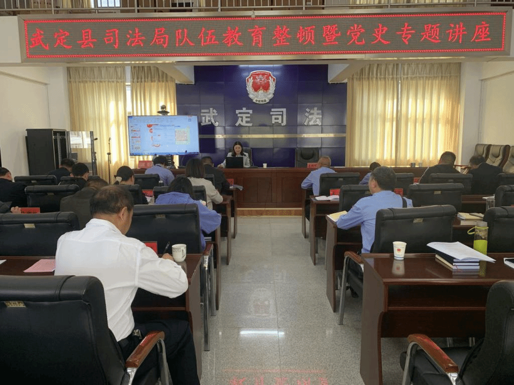 按照政法队伍教育整顿统一部署要求,全面推进县司法局队伍教育整顿走深走实,3月26日上午,武定县司法局邀请县委党校江丽娅老师为全体干部职工开展党史学习教育专题党课。局党组成员、副局长李跃文支持会议。