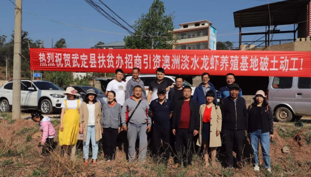 4月23日,武定县扶贫办招商引资澳洲淡水龙虾养殖项目在狮山镇九厂村委会小箐村养殖基地开始破土动工。