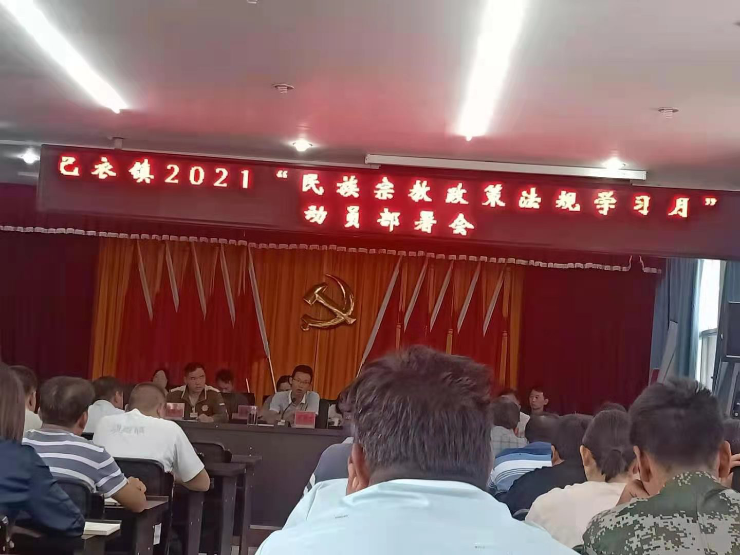 为认真贯彻落实《楚雄州帮助指导武定县对重点地区深入开展法治宣传工作实施方案》和县司法局工作要求,加强本区域内重点地区民族宗教政策法规宣传,推进全镇依法治镇工作。7月12日,己衣镇召开“民族宗教政策法规学习月”动员部署会,学习落实上级文件精神,安排布置我镇工作。