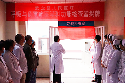 为积极推进医院呼吸与危重症医学科规范化建设工作,提升呼吸系统疾病专科化整体技术水平,为患者提供优质服务。2021年8月26日,武定县人民医院呼吸与危重症医学科功能检查室正式投入使用。上午8时,武定县人民医院党政领导班子成员和呼吸与危重症医学科医护人员共同为功能检查室揭牌。