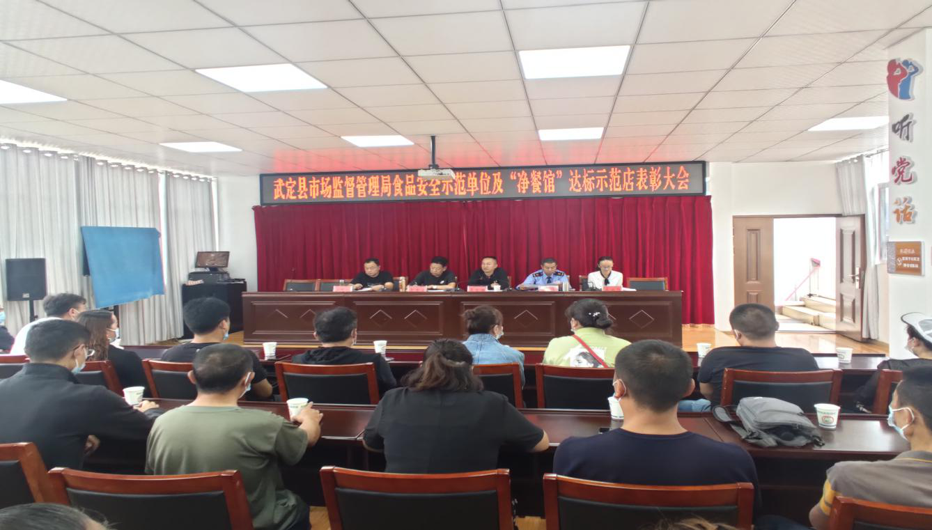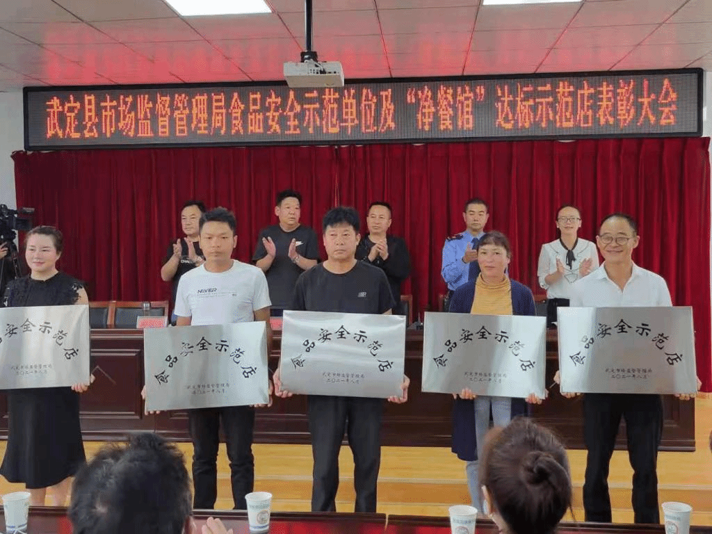 为鼓励先进,树立标兵,不断提升食品安全整体水平,打造辖区餐饮消费领域规范操作的示范点和开展公众食品安全宣传教育的平台,调动广大食品生产经营企业的积极性,自觉投身到国家卫生县城创建中来。9月7日,武定县市场监督管理局组织召开表彰大会,在2020年对首批整改迅速、提升到位的30户餐饮服务单位进行表彰授牌的基础上,再对2021年“净餐馆”专项行动中落实较好、验收达标的17户“净餐馆”达标示范店,以及守法经营并积极配合创建国家卫生县城工作的食品生产企业、食品流通企业、食堂等24户食品经营示范店进行表彰授牌。县人民政府副县长龚世雄,县市场监督管理局全体干部职工以及获得表彰的企业和个体工商户参加了会议。会议由县市场监管局局长贺有文主持。