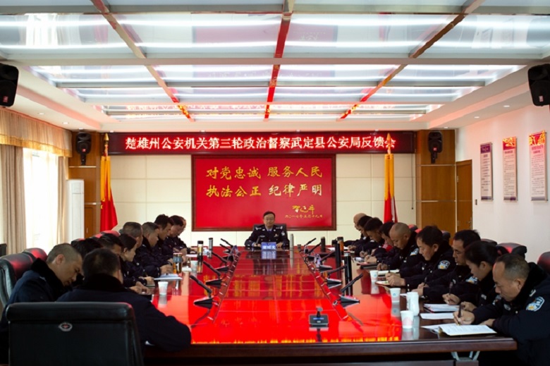 为推进政治督察反馈意见全面整改,12月1日州公安局党委副书记、政治督察第二督察组组长谢绍光同志,楚雄警校党委副书记、政委、第二督察组常务副组长李映山同志和第二督察组副组长夏会良同志深入武定县公安局,代表州局党委向武定县公安局党委反馈政治督察意见及存在问题。