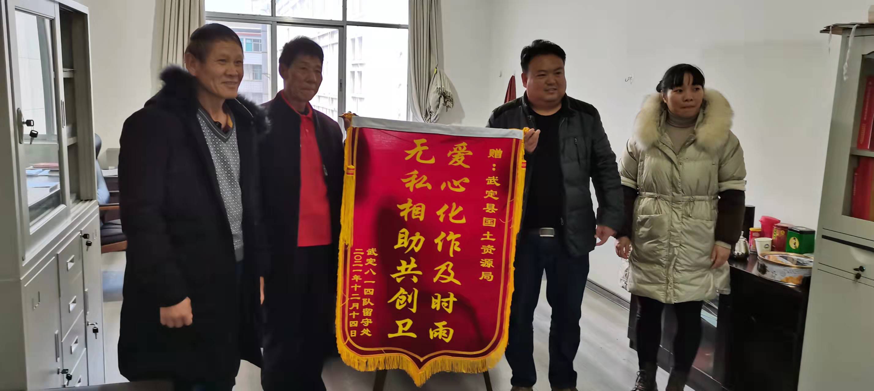 12月14日上午,我单位包保的武定八一四队留守处老旧小区负责人将一面书写着“爱心化作及时雨,无私相助共创卫”的锦旗送到了单位领导手中,感谢我局为小区百姓打造了一个和谐、干净、整洁的生活环境所作出的努力。