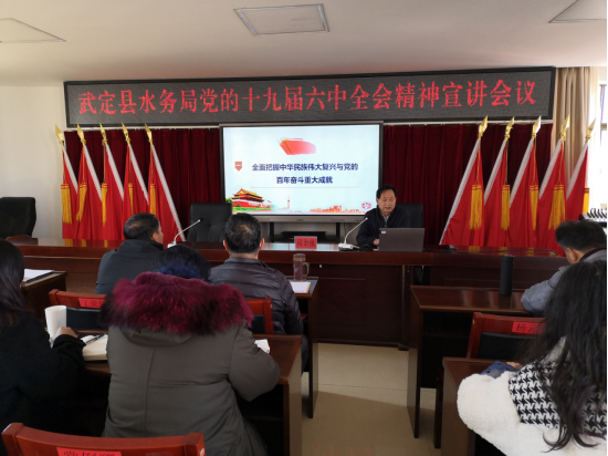 县水务局把深入学习宣传贯彻落实党的十九届六中全会精神作为重大政治任务,坚持以习近平新时代中国特色社会主义思想为指导,增强“四个意识”、坚定“四个自信”、做到“两个维护”。为扎扎实实做好水利各项工作,12月27日下午,在502大会议室,县水务局组织开展了学习贯彻党的十九届六中全会精神专题宣讲报告会,邀请了县委党校高级讲师闫尔俊老师作专题宣讲报告,机关全体干部职工和局属各支部党员共40余人参加了会议,水务局党委委员、云龙水库水资源管理局局长朱乾昌同志主持了会议。