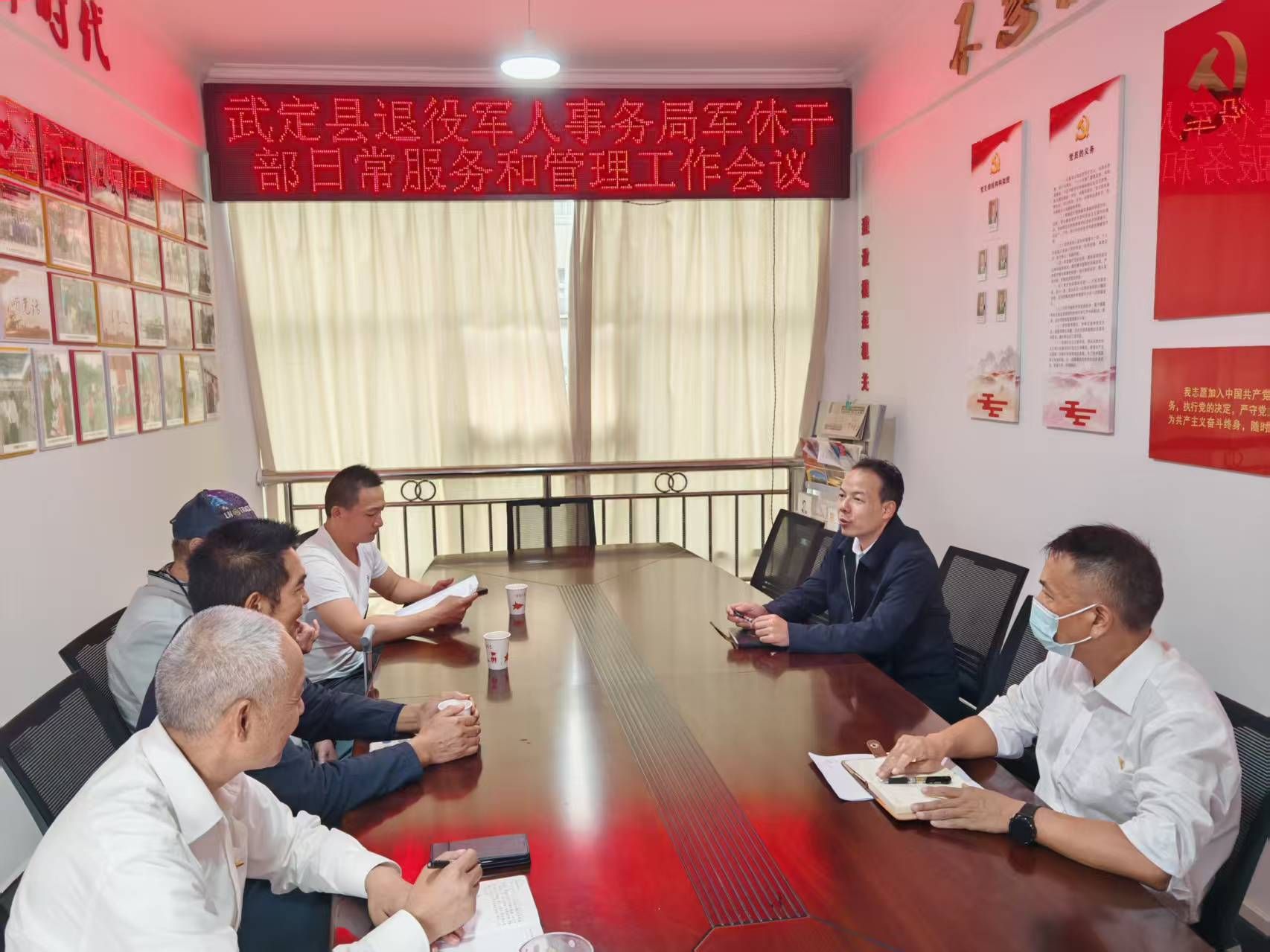 为进一步提升军休干部服务保障水平,推动军休工作高质量发展,近日,武定县退役军人事务局组织召开军休干部服务管理工作专题会议。会上传达了中国共产党第二十届中央委员会第四次全体会议公报,局领导班子成员、军队移交地方退休干部参加会议。围绕优化服务机制、落实政策待遇、丰富精神文化生活等议题展开深入研讨,部署下一阶段重点任务。