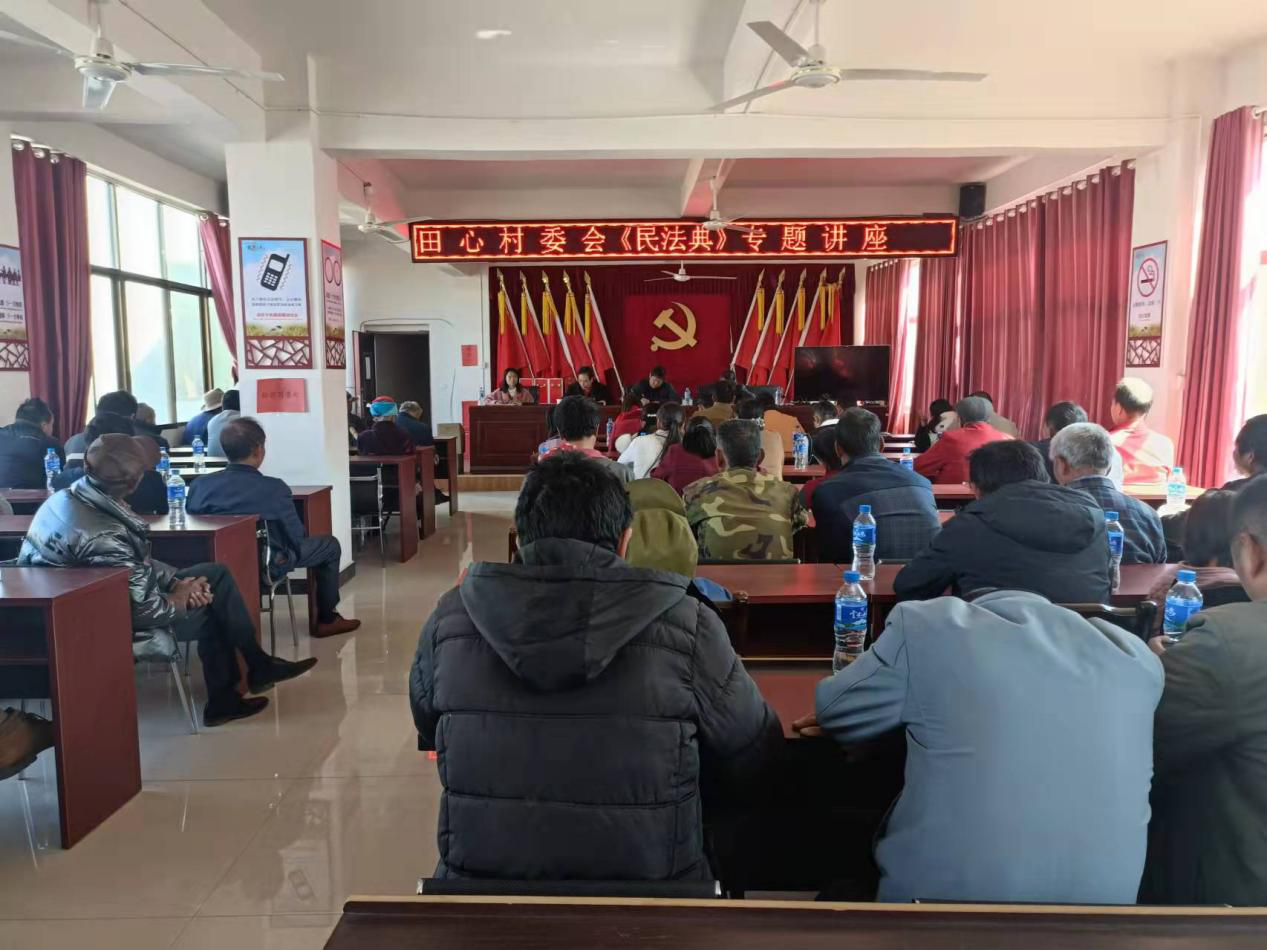 田心司法所所长紧密结合“八五”普法规划启动,围绕未来四年如何继续做好普法工作进行讲授。同时,从民法典概述与法条解读入手,以百姓关心的法律问题为切入点,着重对《中华人民共和国民法典》中农村土地承包经营权、相邻权、侵权责任、婚姻家庭关系、赡养和继承、借贷纠纷、农民工外出务工维权、私建民房、雇员建房出事故如何担责等方面的法律知识进行了以案释法解读。
