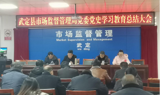 2022年2月21日武定县市场监督管理局党委召开党史学习教育总结大会,会议由局党委副书记吴丽然主持,局党委书记贺有文作总结,各股室(队)所共42人参加。