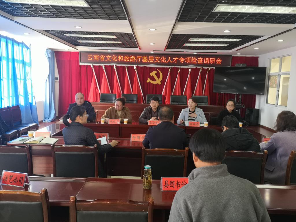 2月18日,云南省文化和旅游厅直属机关党委副书记、直属机关党委(人事处)一级调研员念华昆一行来到武定县开展“三区”人才支持计划文化工作者专项工作调研,州文旅局党组成员、副局长徐丽琴、州文旅游局机关党办副主任、离退办主任杨晓媛陪同。