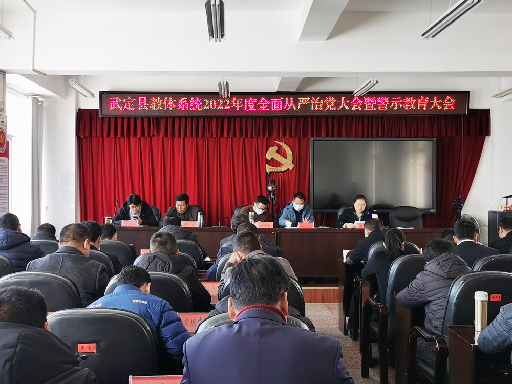 近日,武定县教育体育系统召开全面从严治党暨警示教育大会,县教育工委书记、县教育体育局党组书记、局长祖正文出席会议并讲话,县教育工委副书记袁钰帧主持会议,会议还开展了集体廉政谈话。
