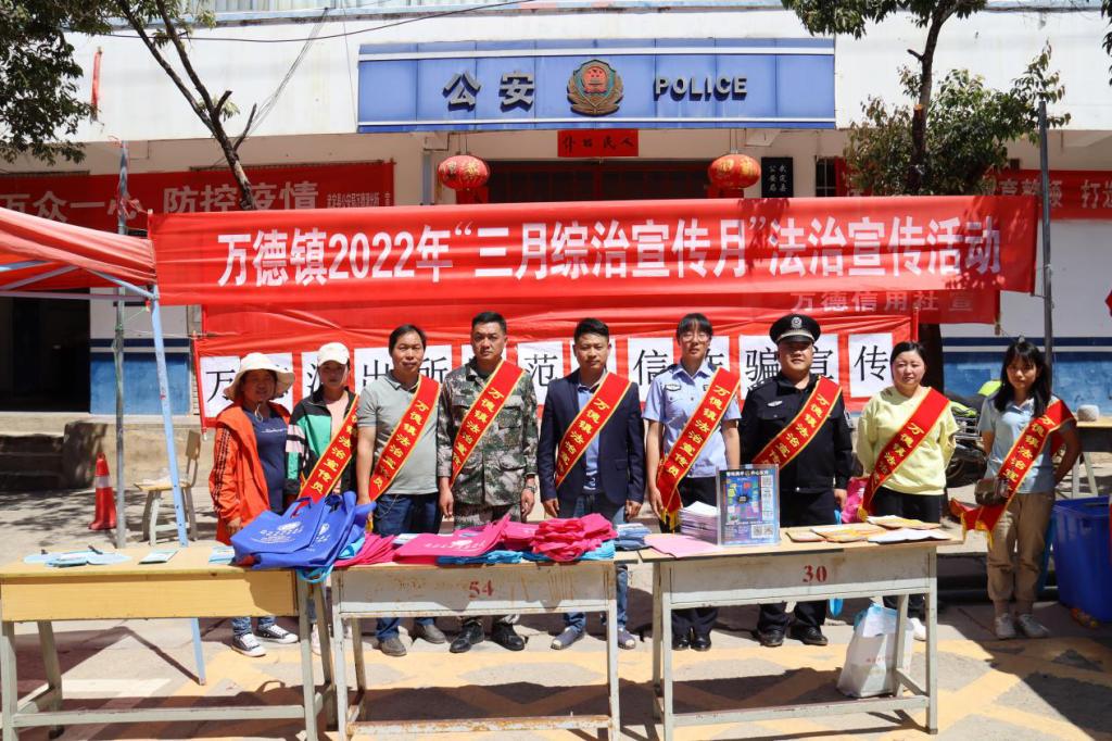 为切实增强群众法律意识,着力营造和谐稳定的社会环境,近日,万德司法所以综治宣传月为契机,联合派出所、镇综治办和农业农村服务中心等部门,共同开展以“齐抓综合治理、共建平安万德”为主题的宣传活动。