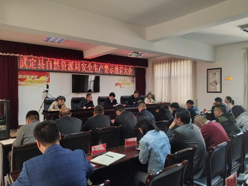 2022年4月11日上午,武定县自然资源局召开全县自然资源系统安全生产工作警示教育大会,传达学习了近期省、州县安全生产工作会议精神及相关文件,分管安全生产的副局长王海龙对近期我县接连发生的安全生产事故进行了通报,局党组书记、局长张顺猷对安全生产工作进行了安排部署。武定县自然资源局机关全体干部职工70余人参加此次会议,张顺猷局长主持此次会议。