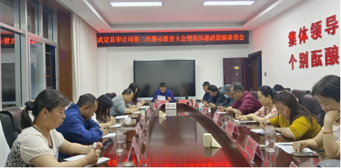 为认真贯彻落实中央办公厅《关于加强新时代廉洁文化建设的意见》及中央、省州县纪委全会精神,按照县纪委县监委《关于在“清廉武定”建设中深化廉洁教育的实施方案》要求,4月27日晚,武定县审计局召开第二次警示教育暨集体廉政提醒谈话会,全体党员干部参加会议。