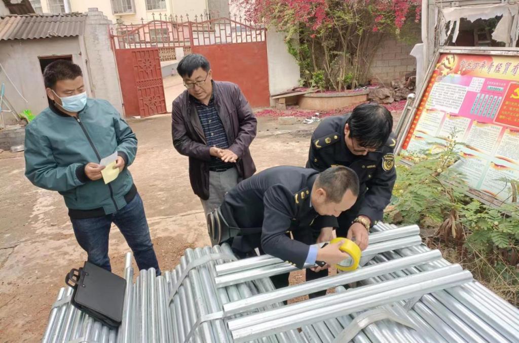 该次抽检,共出动执法人员3人次,执法车辆1台次,执法人员依法定抽检程序,在工程现场随机抽取DN40热镀锌钢管、DN20热镀锌钢管各一个批次,经施工单位天安云建设工程有限公司云南分公司负责人签字确认后,对所抽样品当场封样,并及时送往检验机构。抽检过程中,执法人员一并对天安云建设工程有限公司云南分公司的证照资质、工程材料进货渠道、安全生产状况、疫情防控工作进行了监督检查。