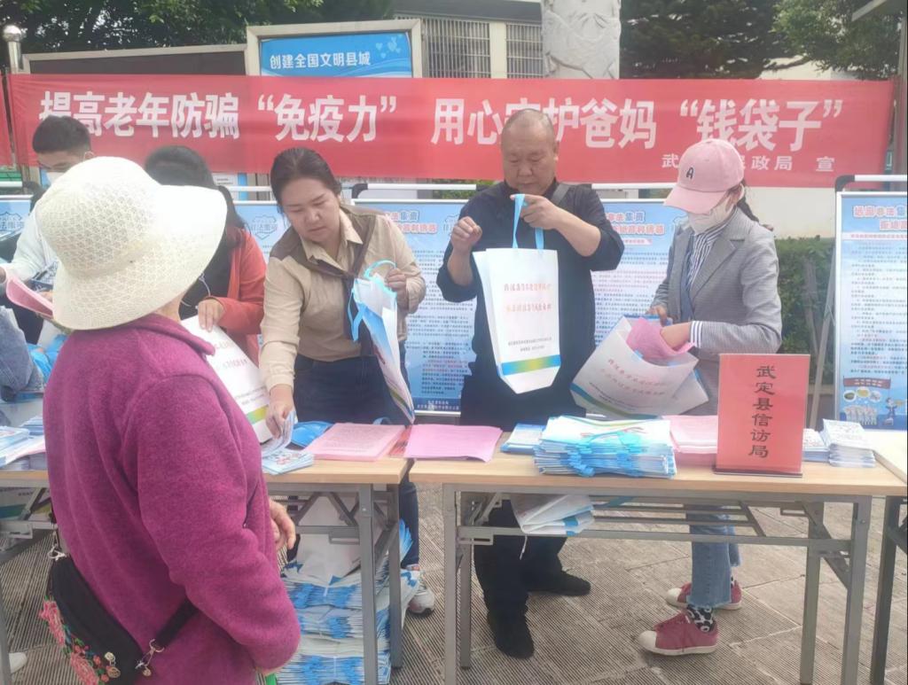 武定县信访局参加了在体育馆广场开展的非法集资户外集中宣传活动。宣传活动以“守住钱袋子,护好幸福家”为主题,通过发放宣传册、悬挂宣传横幅的方式,大力宣传非法集资的特点和形式、国家有关防范和处置非法集资活动的各项政策措施,引导群众自觉远离非法集资。此次宣传活动,我局共发放宣传册200余册。