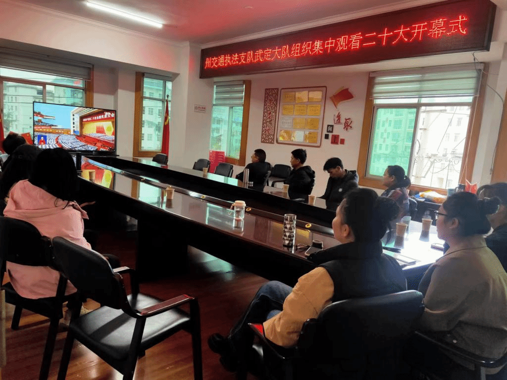 2022年10月16日上午,楚雄州交通运输综合行政执法支队武定大队组织全体党员干部集中观看了中国共产党第二十次全国代表大会开幕盛况,认真聆听大会报告。