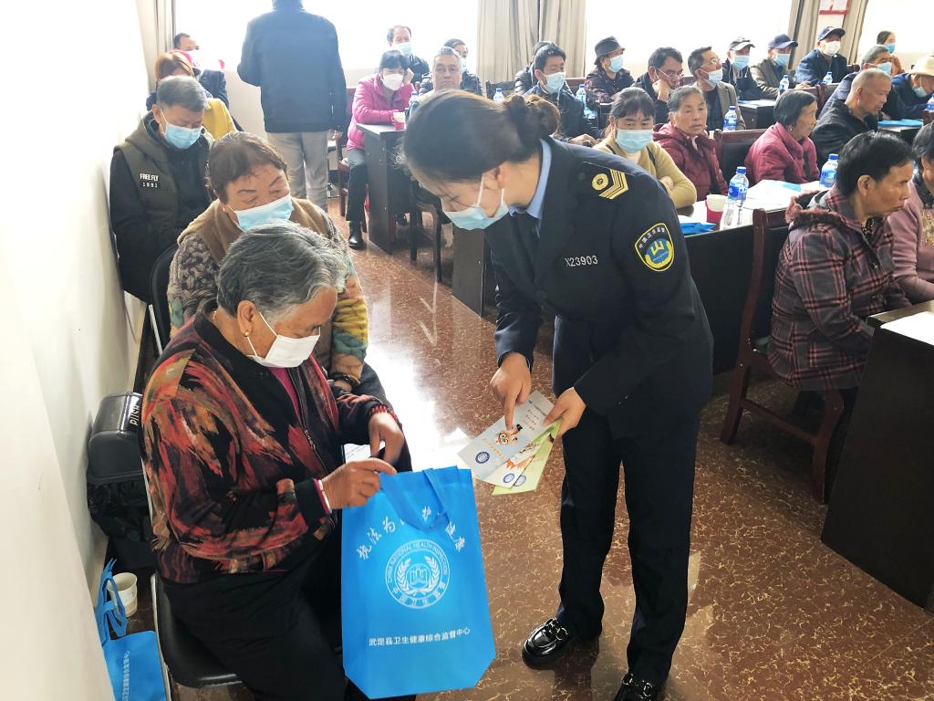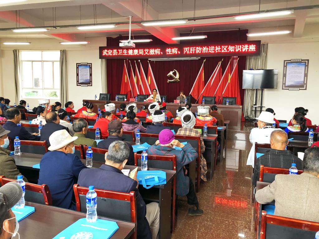 为进一步做好我县艾滋病防治宣传教育工作,切实增强老年人群预防艾滋病性病意识,不断提高艾滋病性病防控科普知识知晓率,增强老年人自我保护意识,10月11日,武定县卫生健康局以九九重阳节座谈会为契机,组织武定县卫生健康综合监督执法局、武定县疾病预防控制中心工作人员到武定县东岳社区,对该社区100余位老年人开展卫生法律法规宣传及艾滋病、性病、丙肝防治知识宣传宣讲活动。
