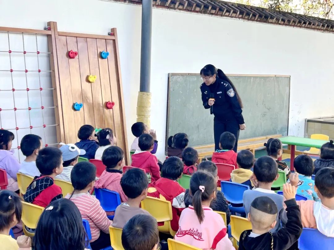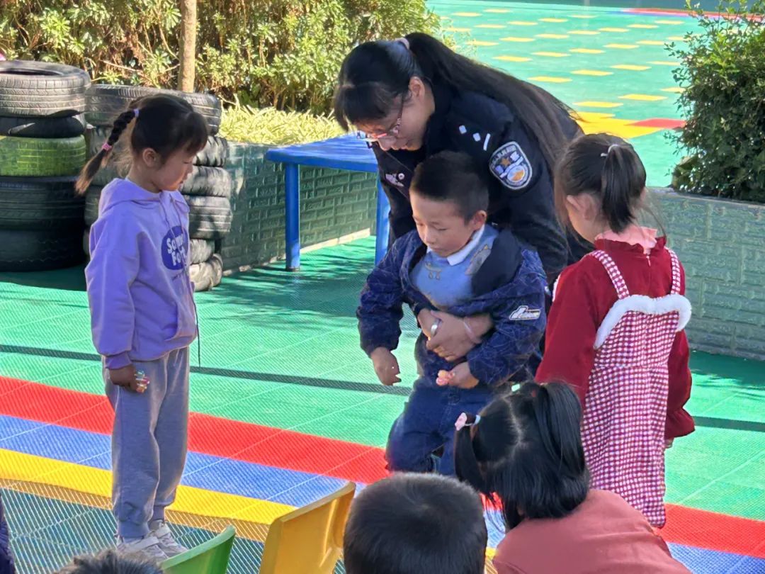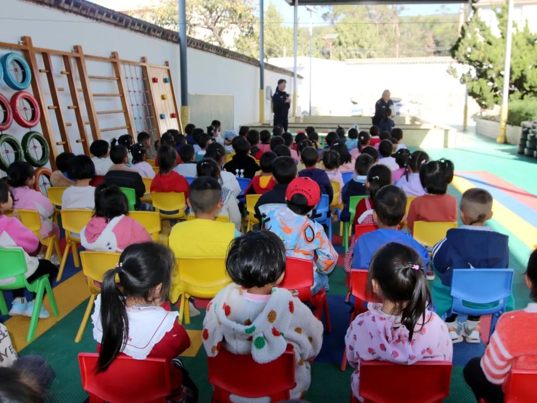 派出所民警则通过生动表演模拟日常生活中“高层坠落危险情境”、“插座莫伸手”、“红灯停、绿灯行、黄灯等一等”等常见情境,用诙谐幽默、互问互答等方式对交通安全、防欺凌等内容进行讲解,引导小朋友们上学放学路上要遵守交通规则注意安全,要牢记爸妈电话号码,牢记自己家庭住址,牢记遇到困难或危险及时告知家长或拨打110报警电话求助。