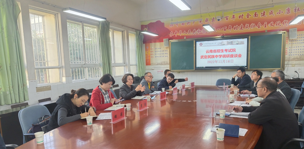 2022年11月16日,云南省招生考试院院长高翔、纪委书记张文寿等一行7人到武定民族中学、职业高级中学围绕《云南省进一步完善高等职业院校分类考试招生实施方案》开展调研。县教育工委副书记袁钰帧、县教育体育局招生办主任武建宏参加了调研。